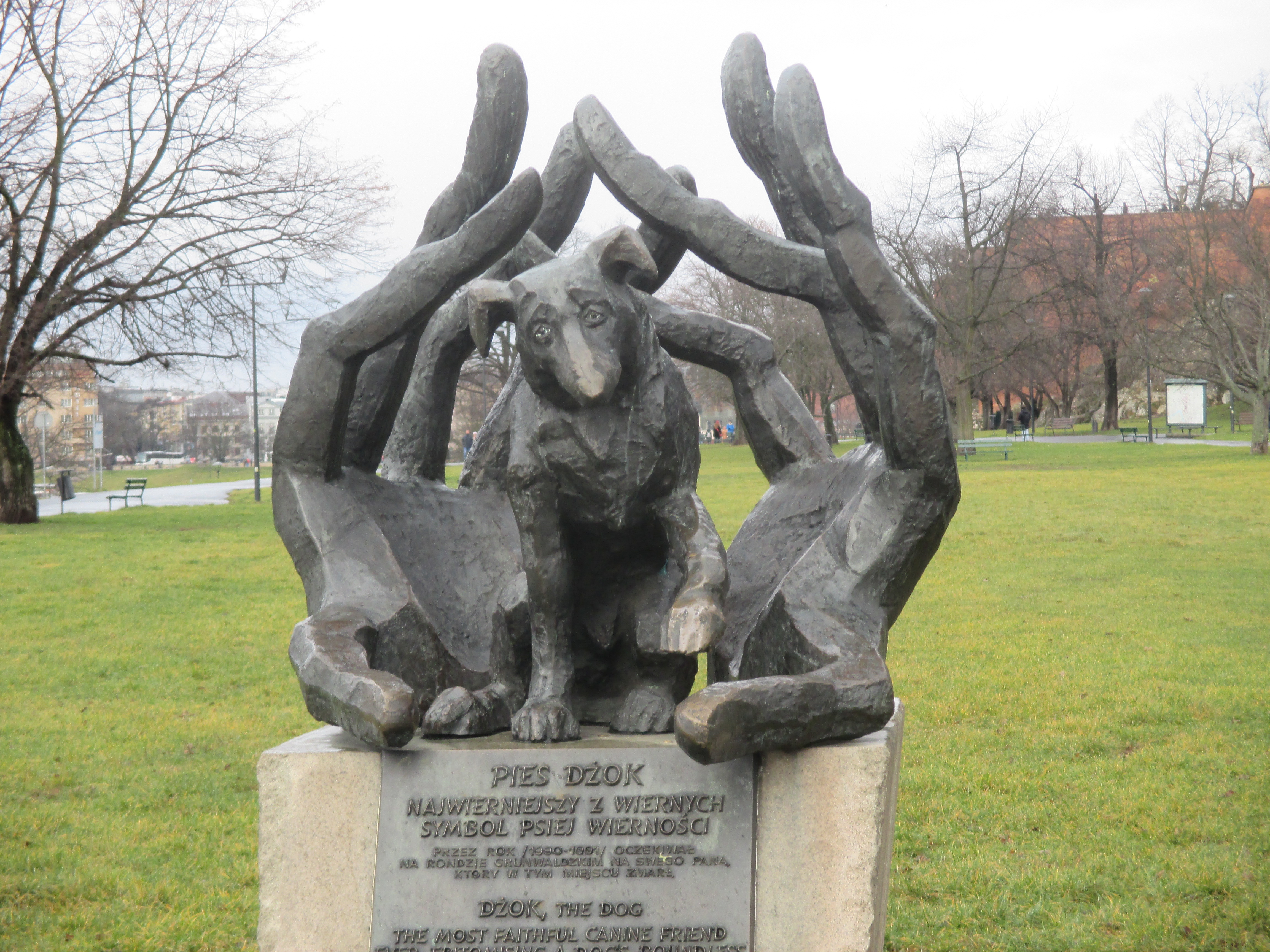 "Памятник псу Джоку — памятник в Кракове, расположенный на Червенском бульваре между Вавелем и Грюнвальдским мостом. Хозяин Джока умер от сердечного приступа, а пёс продолжал ждать его на протяжении года, подкармливаемый местными жителями. Затем собаку приютила пожилая женщина, у которой он прожил 7 лет, а после её смерти пёс сбежал из дома и погиб под колёсами поезда.